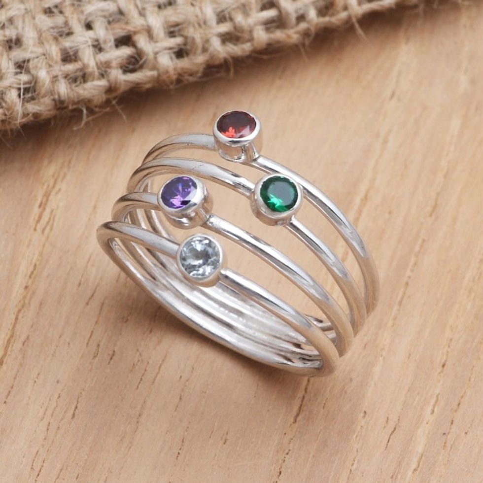 Hand Crafted Amethyst and Garnet Ring 'Rainbow Stepping Stones' Item ID: 2670122004