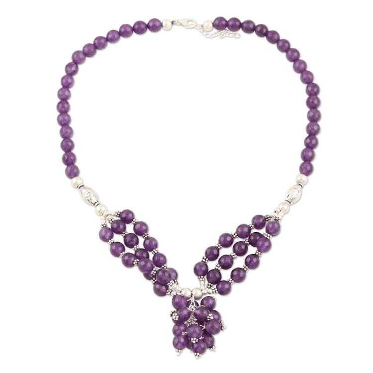 Hand Crafted Amethyst and Sterling Silver Pendant Necklace 'Bouquet in Purple' Item ID: 2671789450