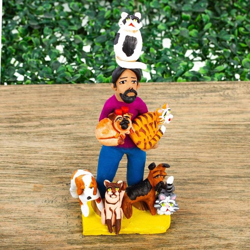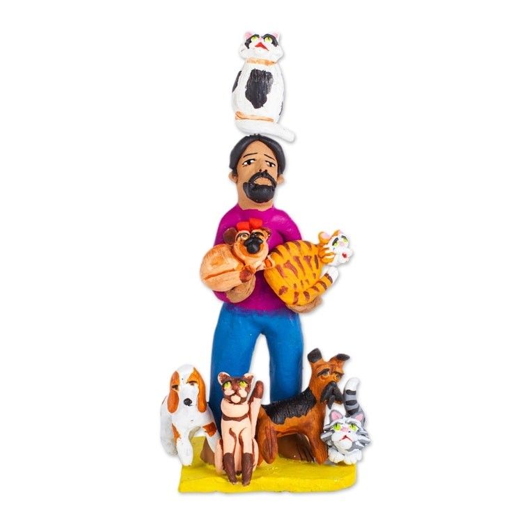Hand Crafted Animal Lover Ceramic Sculpture 'Pet Lover' Item ID: 2671807934