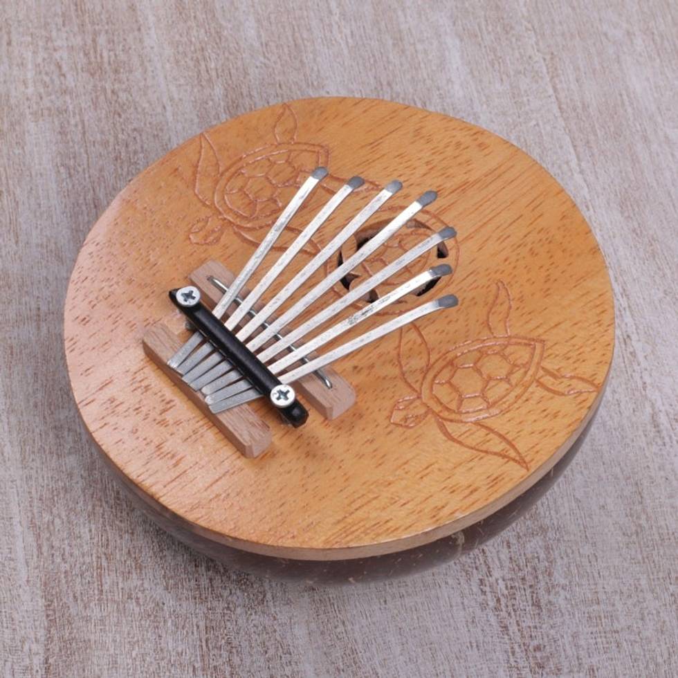Hand Crafted Balinese Coconut Shell Thumb Piano 'Turtle Kalimba' Item ID: 2671821809