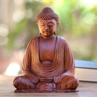 Hand Crafted Balinese Suar Wood Buddha Meditation Statuette 'Serenity Buddha' Item ID: 2671734334