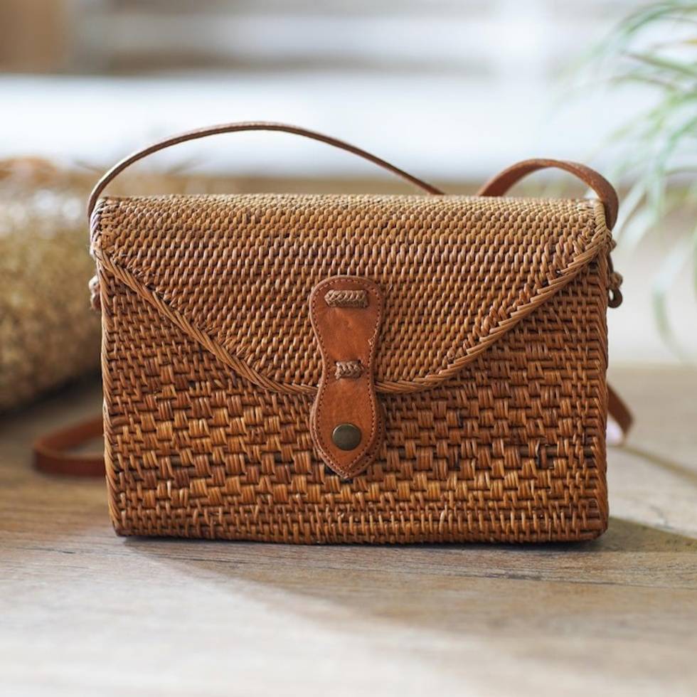 Hand Crafted Bamboo Sling Bag from Bali 'Uluwatu Vacation' Item ID: 2671747008