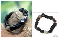 "From Ghana, this agate beaded bracelet captivates in shades of black, white, gray and brown. Tina Quaye crafts the bracelet by hand with free form agates in natural and enhanced shades."