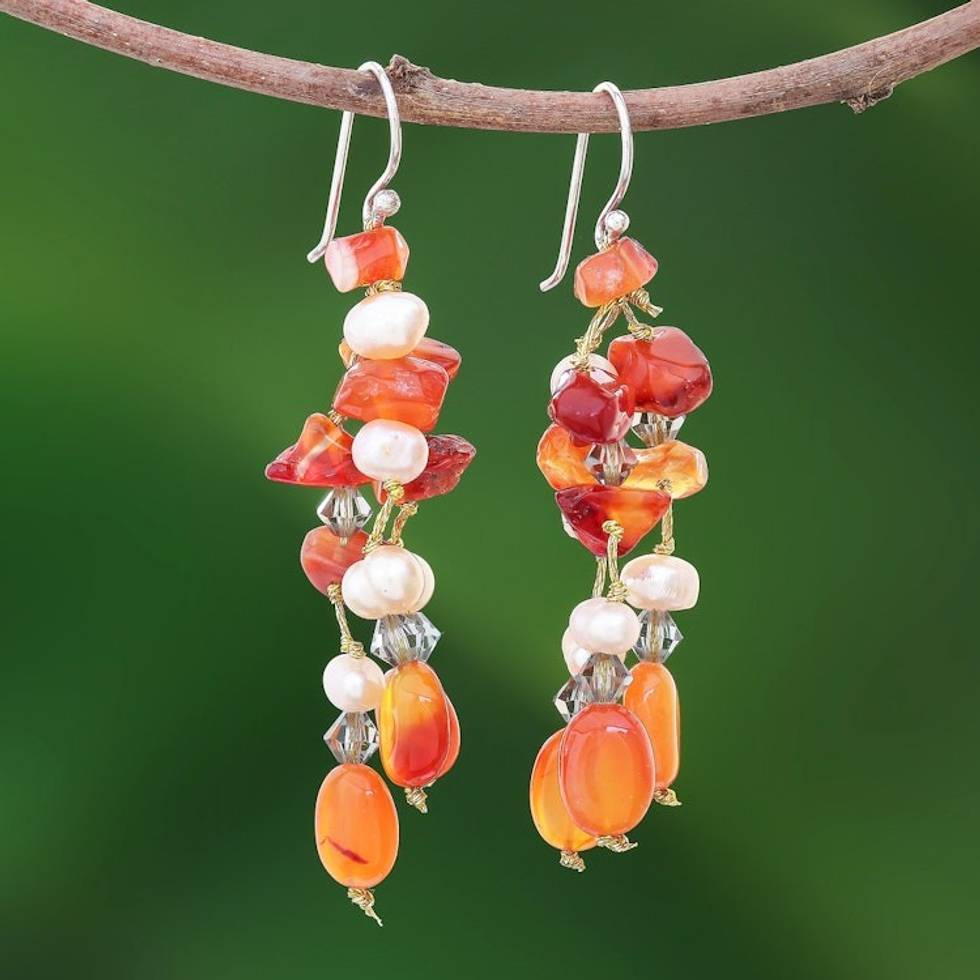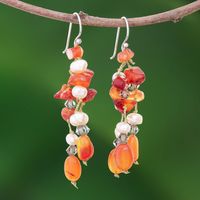 Hand Crafted Beaded Carnelian Earrings 'Orange Ice' Item ID: 2671802858