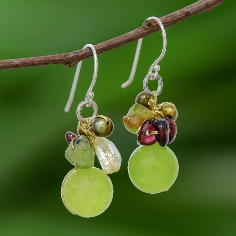 Hand Crafted Beaded Multigem Earrings 'Freshness' Item ID: 2669928123