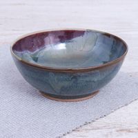 Hand Crafted Blue Ceramic Soup Bowl 'Happy Harvest' Item ID: 2669897421