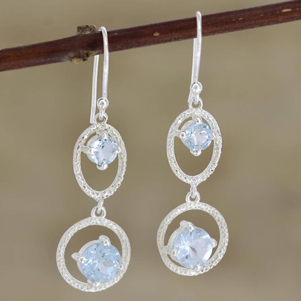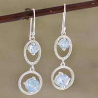 Hand Crafted Blue Topaz and Sterling Silver Dangle Earrings 'Winter Romance in Blue' Item ID: 2669924191