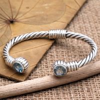 Hand Crafted Blue Topaz Cuff Bracelet 'Holding On' Item ID: 2671747125
