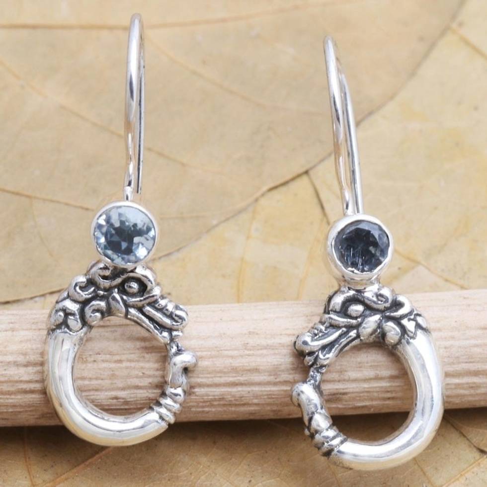 Hand Crafted Blue Topaz Dangle Earrings 'Dragon Water' Item ID: 2671745977