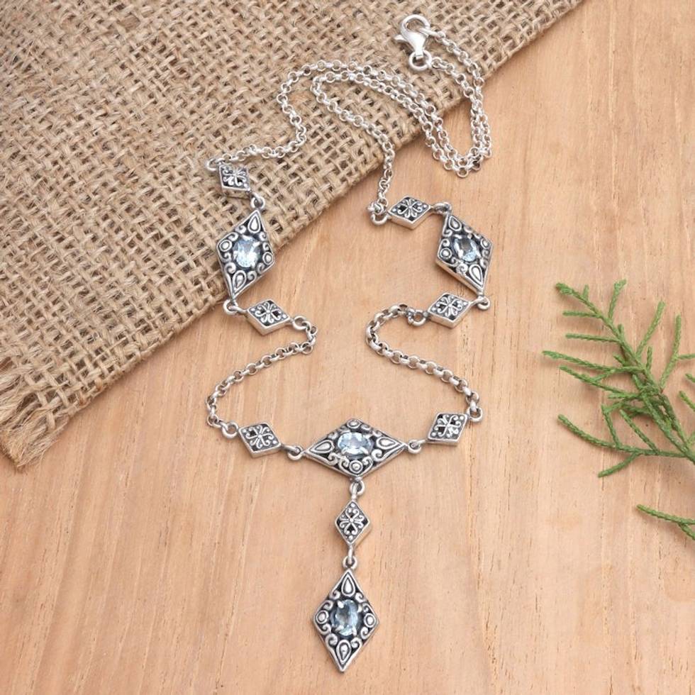 Hand Crafted Blue Topaz Pendant Necklace 'Blue Ice Caps' Item ID: 2671747697