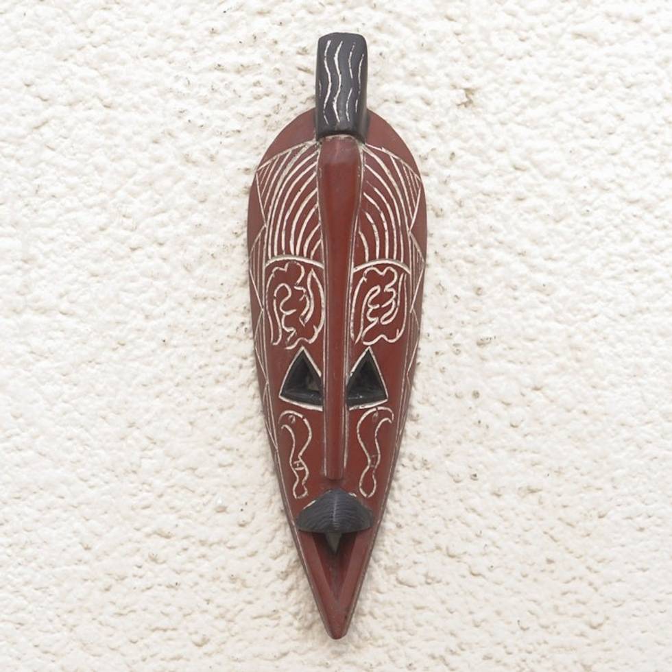 Hand Crafted Brown Painted Sese Wood Wall Mask from Ghana 'Amarachi' Item ID: 2671803645