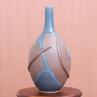 Hand Crafted Celadon Ceramic Banana Leaf Vase 'Blue Banana' Item ID: 2671800077