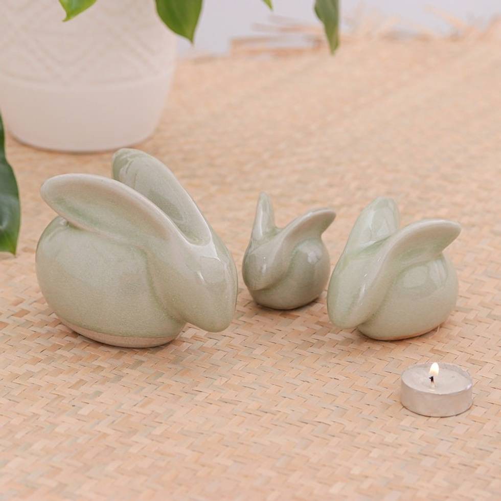 Hand Crafted Celadon Ceramic Sculptures Set of 3 'Chiang Mai Rabbits' Item ID: 2671803085