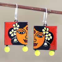 Hand Crafted Ceramic Dangle Earrings from India 'Indian Beauty' Item ID: 2671789945
