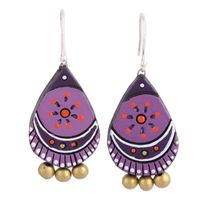 Hand Crafted Ceramic Dangle Earrings from India 'Lavender Harmony' Item ID: 2671790697