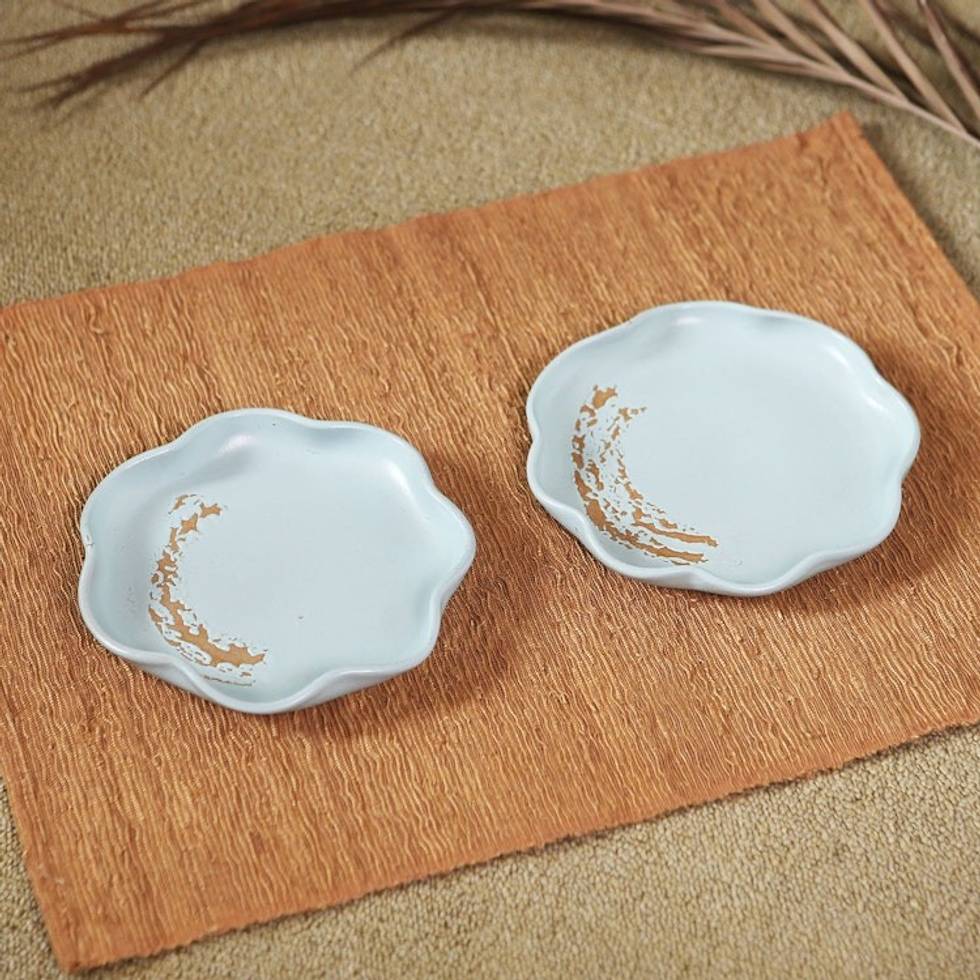 Hand Crafted Ceramic Dessert Plates Pair 'Naked Blue' Item ID: 2671747267
