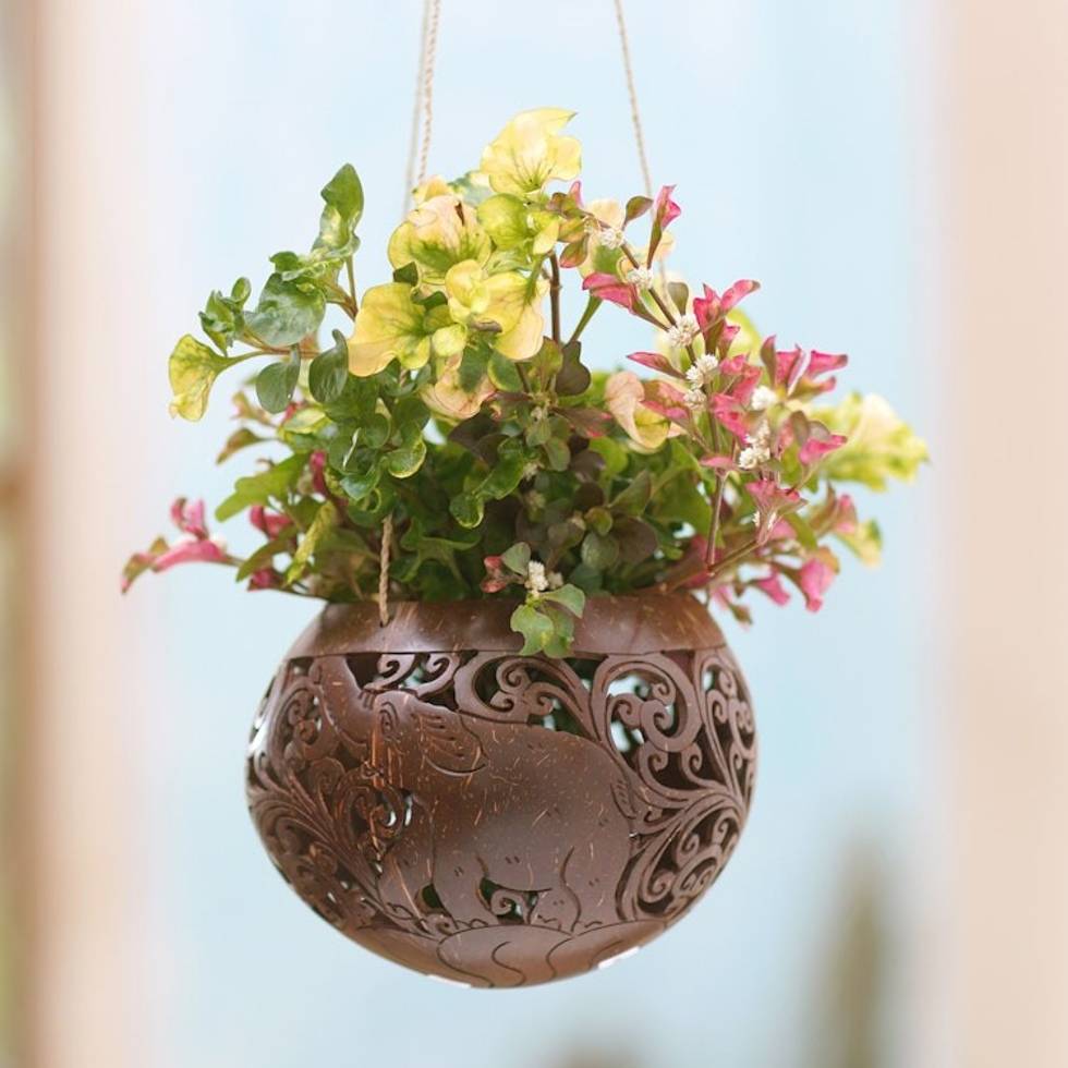 Hand Crafted Coconut Shell Hanging Planter 'Tropical House in Elephant' Item ID: 2671557775