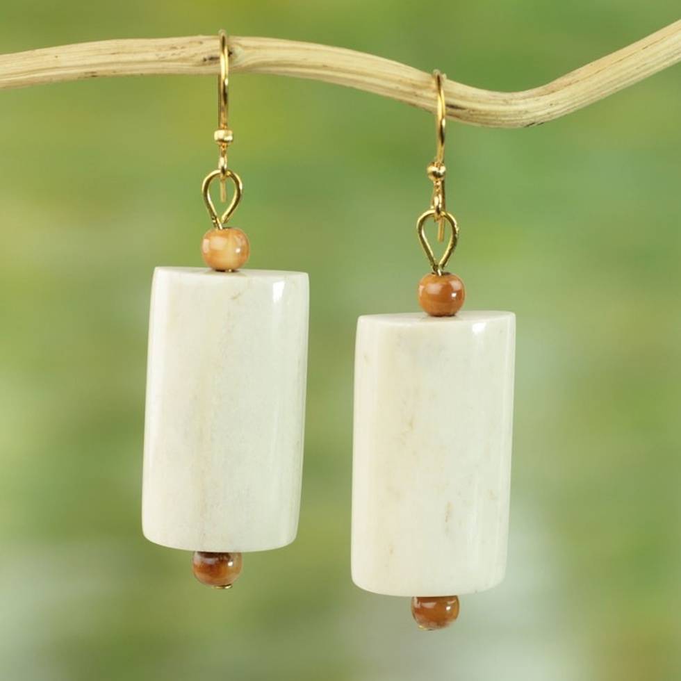 Hand Crafted Cow Bone Dangle Earrings from West Africa 'Glowing Path' Item ID: 2671803928