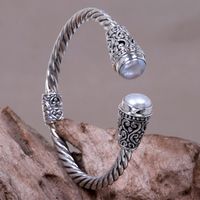 Hand Crafted Cultured Freshwater Pearl Cuff Bracelet 'Precious Dewdrops' Item ID: 2669923228