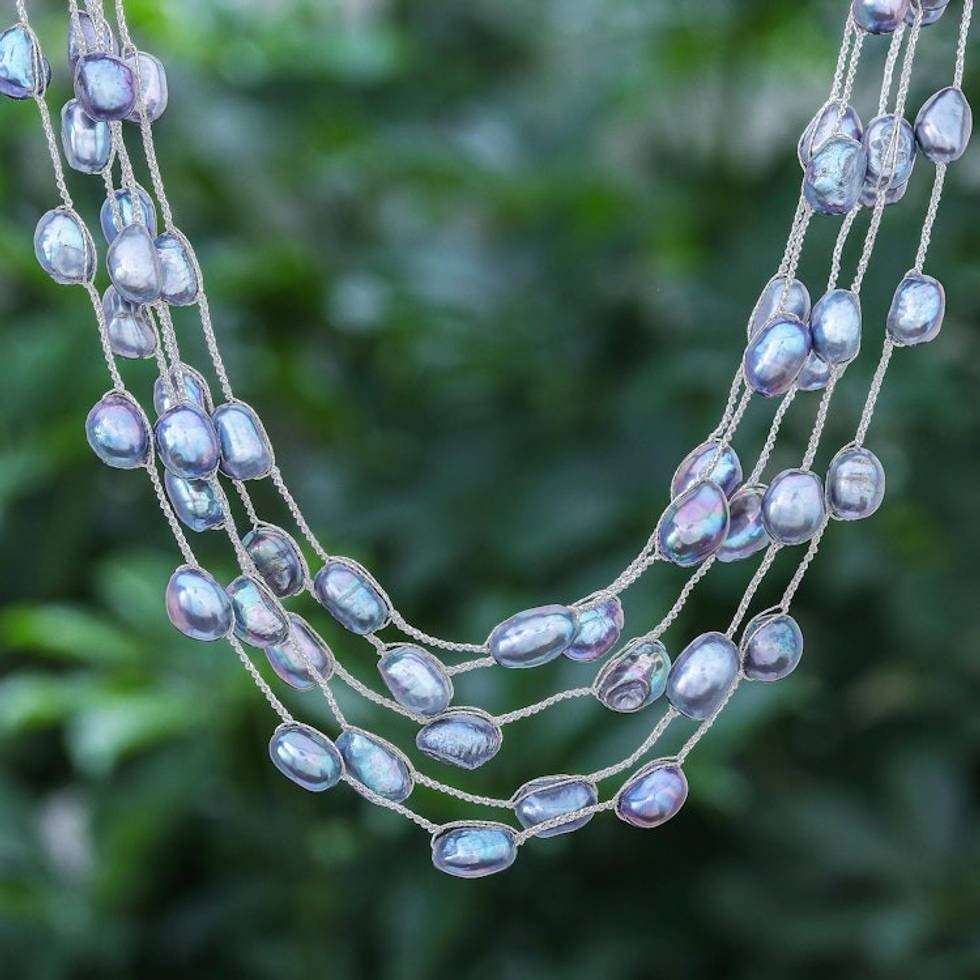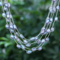 Hand Crafted Cultured Freshwater Pearl Station Necklace 'Secret Pearl in Grey' Item ID: 2669926157