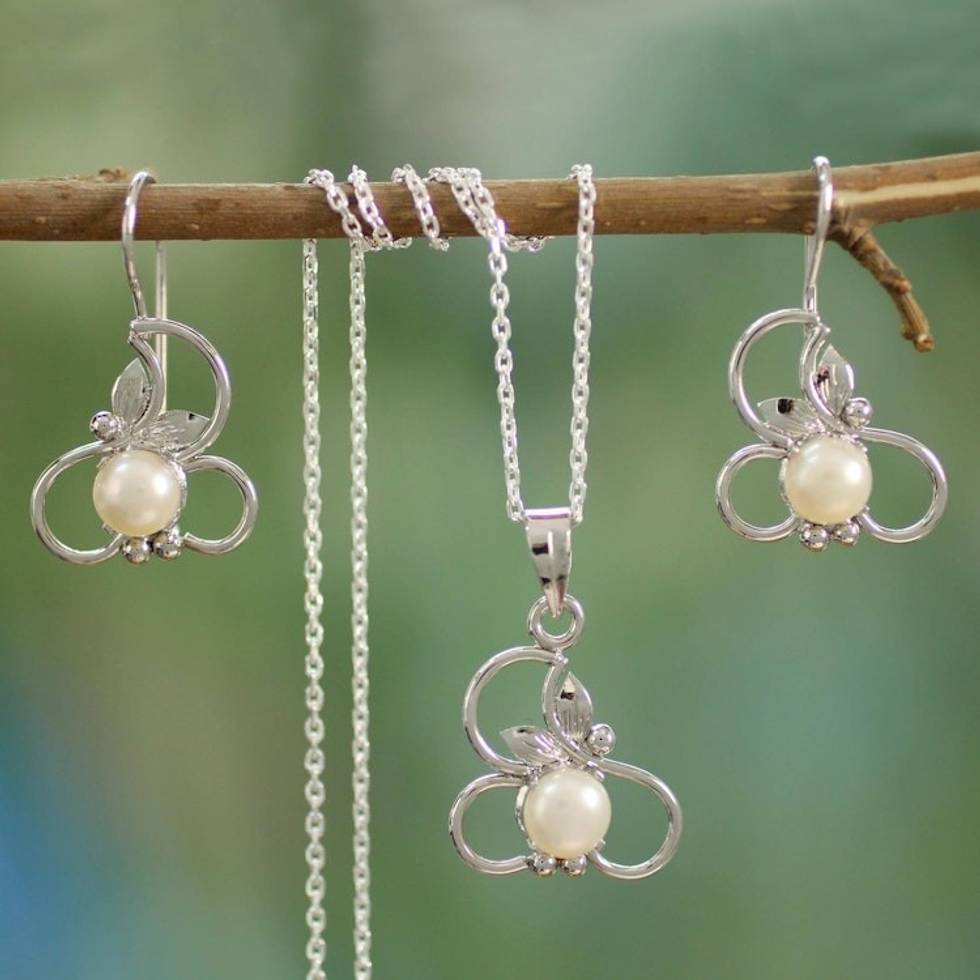 Hand Crafted Cultured Pearl Jewelry Set in Sterling Silver 'Pure Refinement' Item ID: 2671794510