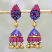 Hand Crafted Floral Ceramic Dangle Earrings from India 'Cerise Flowers' Item ID: 2671791176