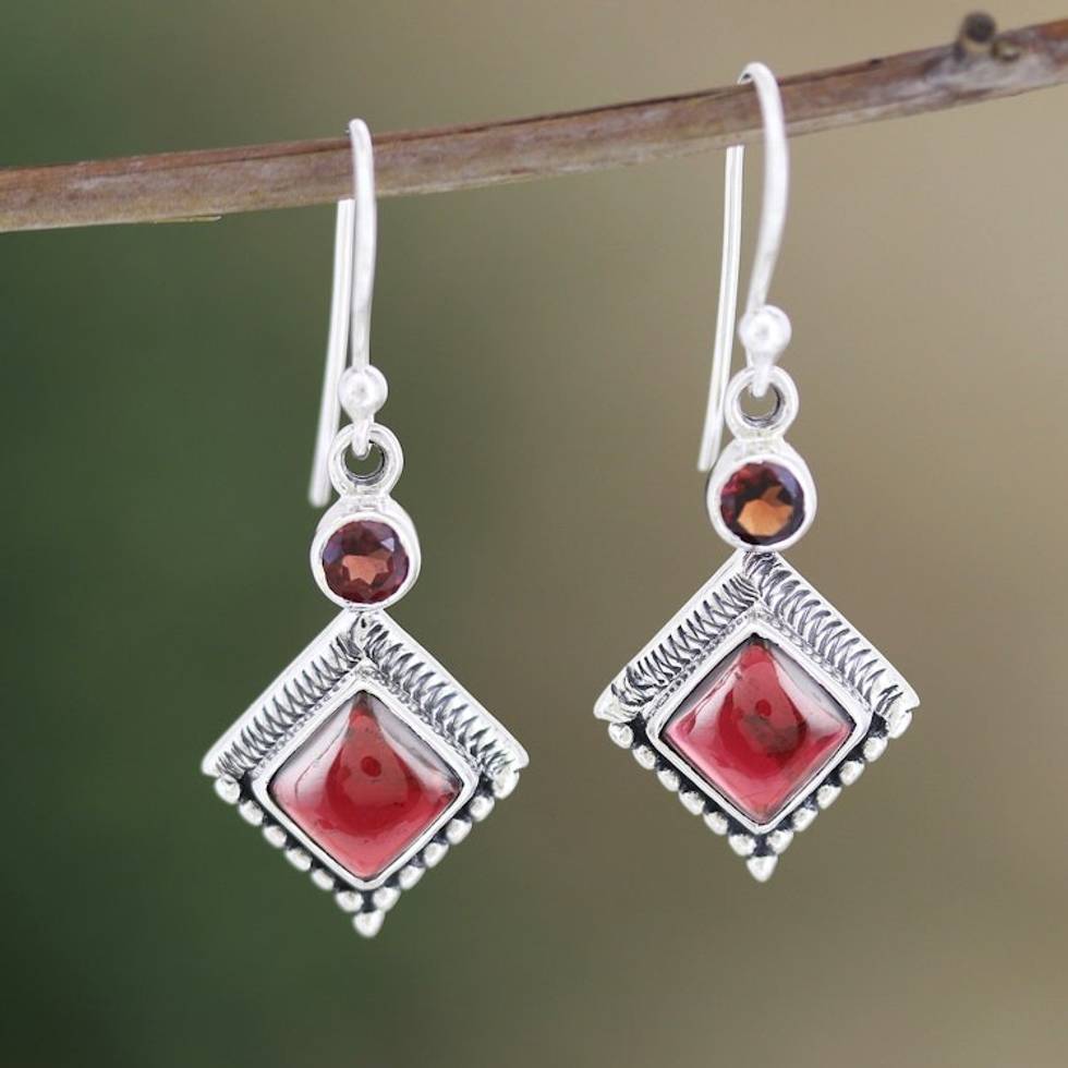 Hand Crafted Garnet and Sterling Silver Dangle Earrings 'Blissful Red' Item ID: 2671787662