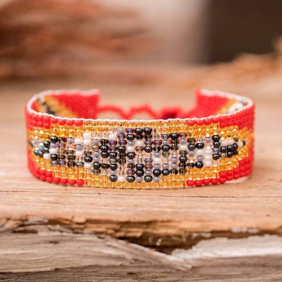 Hand Crafted Glass Beaded Bracelet 'Banner in Red' Item ID: 2671777259