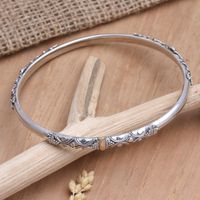 This is unique, well-crafted, bracelet which I will wear a lot, as it goes with anything. The construction is such that it is a bit like a taut spring that opens enough to allow the hand to slide in, and then springs back to circle the arm lovingly, but not tightly. The design is clean and modern looking, almost Scandinavian in concept, yet distinctly Balinese in curvature. It is already one of my favorite pieces of jewelry and I am getting another to give to my best friend.