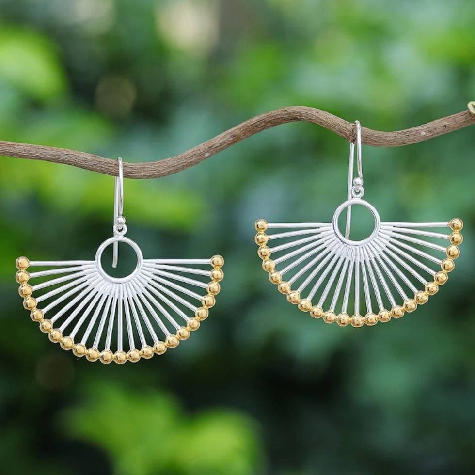 Hand Crafted Gold-Accented Dangle Earrings 'Palace Fan' Item ID: 2671797957