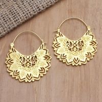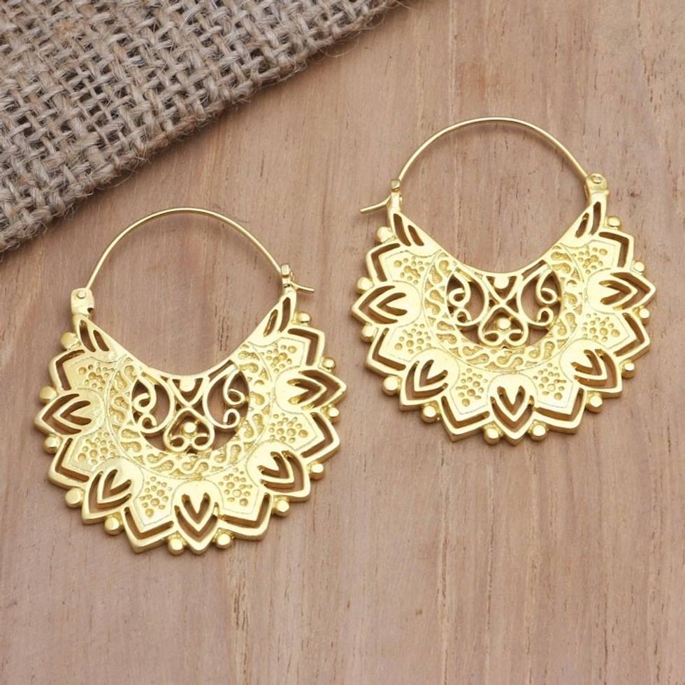 Hand Crafted Gold-Plated Brass Hoop Earrings 'Lustrous Love' Item ID: 2671670304