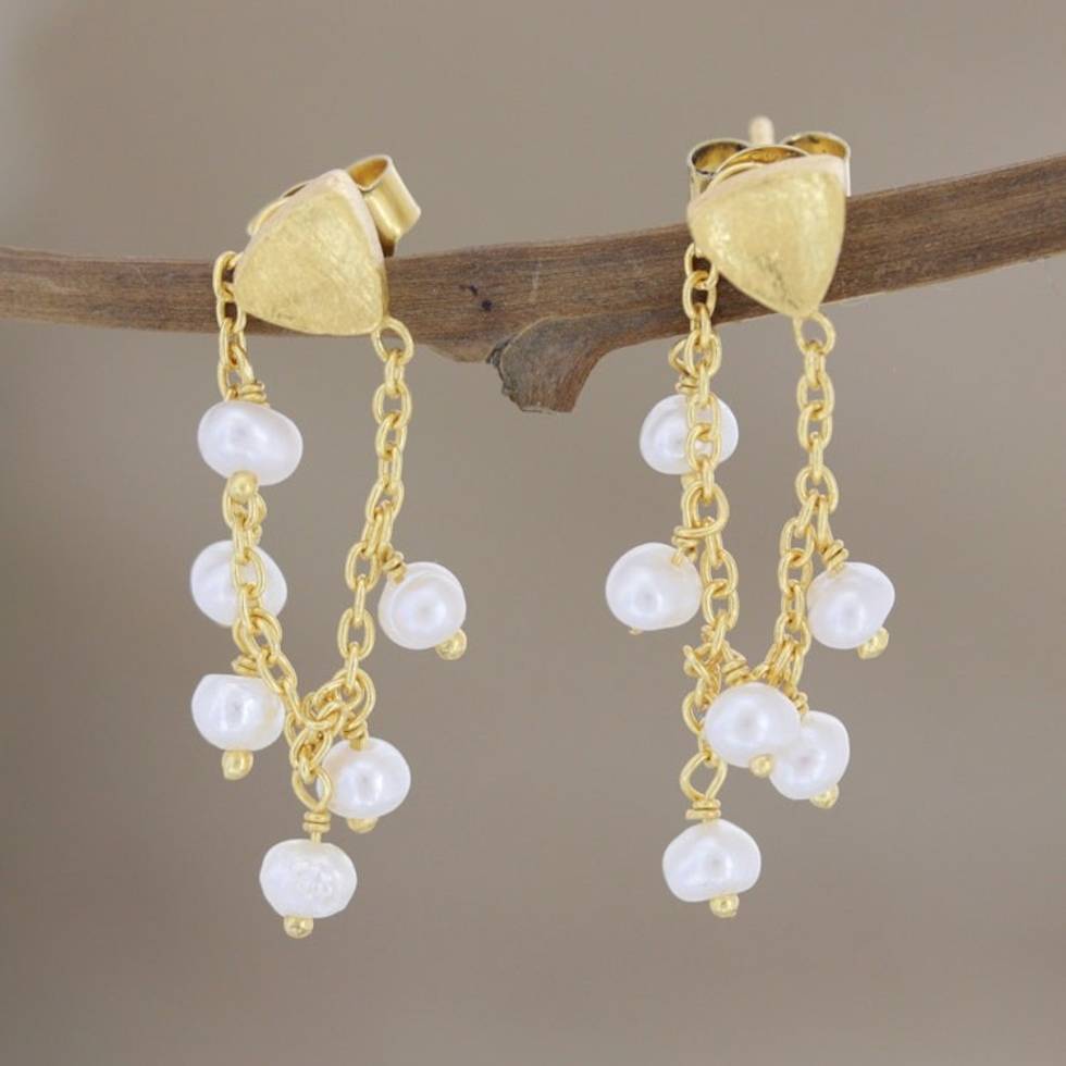 Hand Crafted Gold-Plated Cultured Pearl Dangle Earrings 'Charmed Life' Item ID: 2671789098