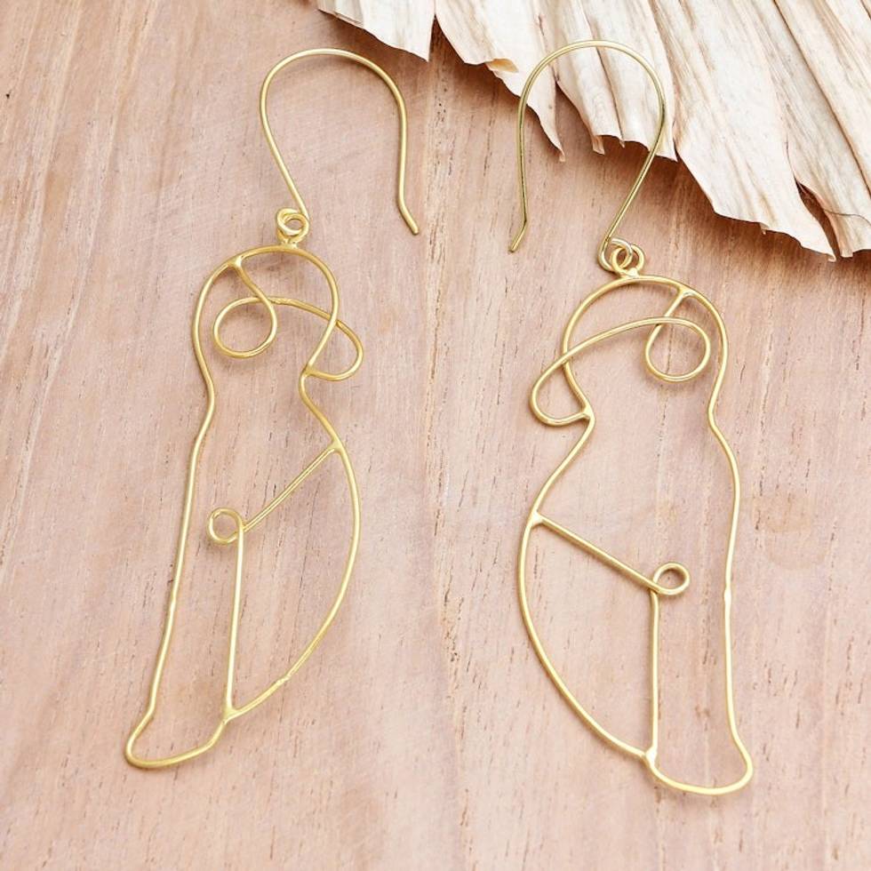 Hand Crafted Gold-Plated Dangle Earrings from Indonesia 'Body Language' Item ID: 2671747902