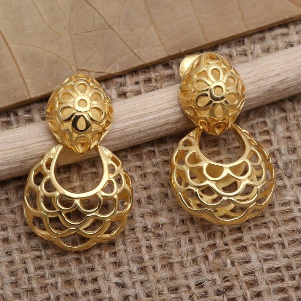 Hand Crafted Gold-Plated Dangle Earrings 'Scale Back in Gold' Item ID: 2671745119