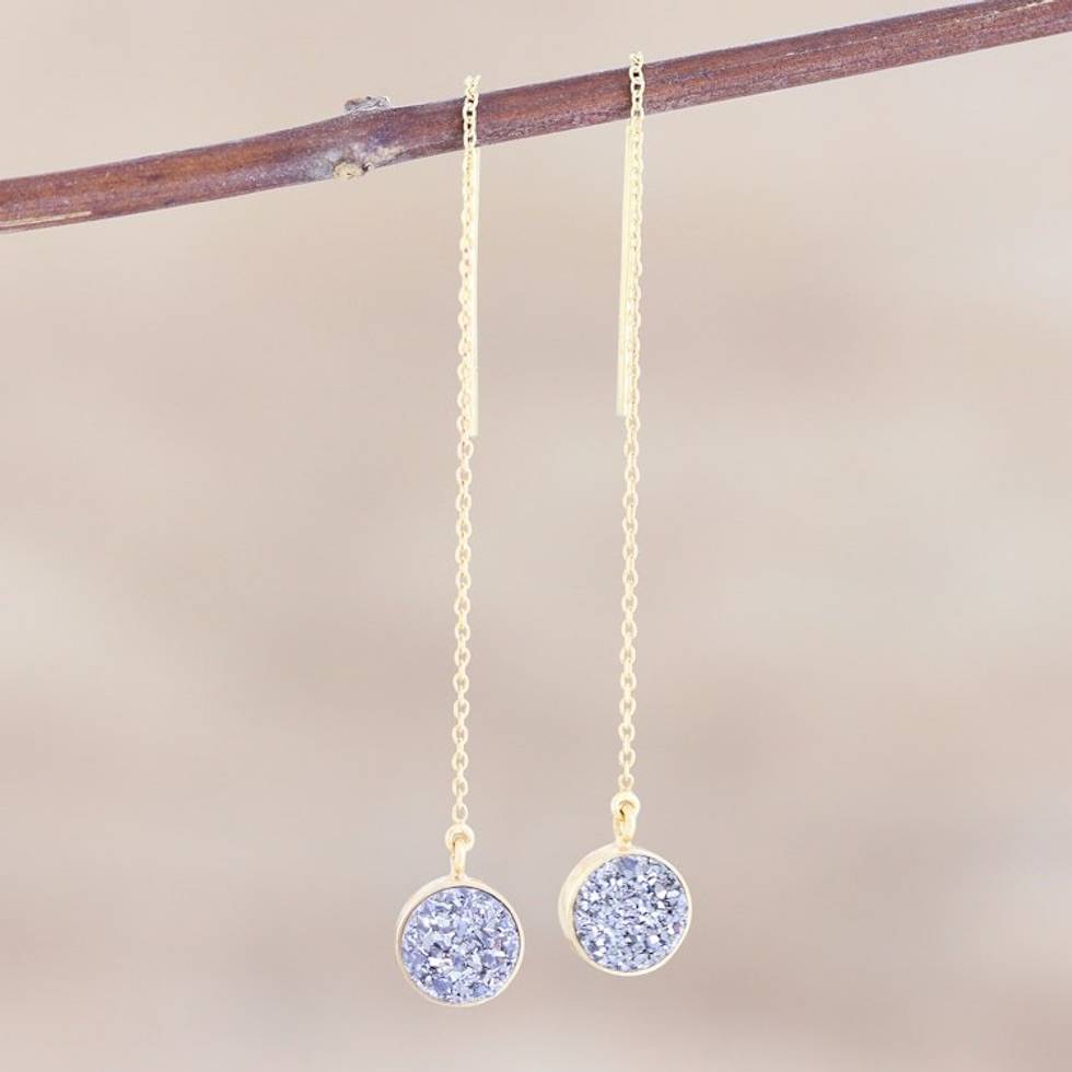 Hand Crafted Gold Plated Druzy Quartz Dangle Earrings 'Hanging Star in Titanium' Item ID: 2671789720