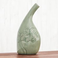 Hand Crafted Green Celadon Ceramic Floral Vase from Thailand 'Orchid Spirit' Item ID: 2671801497