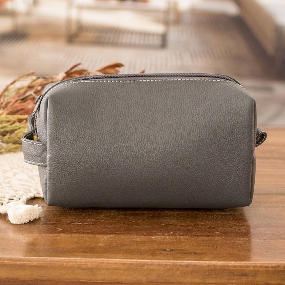 Hand Crafted Grey Leather Men's Toiletry Case 'Man of the World in Flint' Item ID: 2671776934
