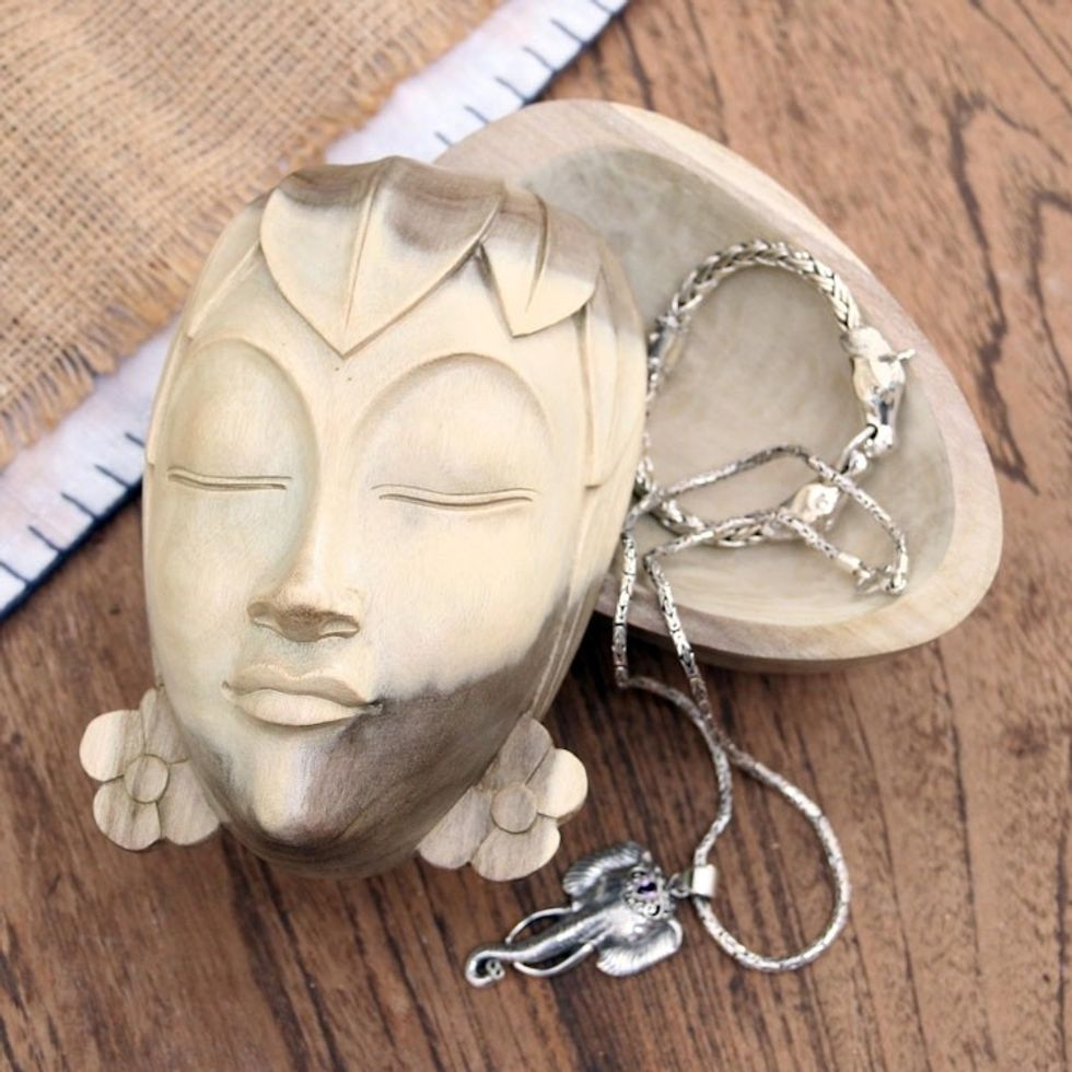 “Of all the works that I have produced, the mask work is the most interesting; that's why I consistently practice it even now. As a craftsman I am inspired by the imagination and arts of Balinese culture. I work alone to produce my works. I also specialize in making storage boxes with masks on the front. I really like this work of mine, because apart from being able to be used as a decoration, it also functions as a place to store things. Masks are one of the traditional Balinese arts. Masks are usually used during dance performances held during religious ceremonies. I heard about Novica from people around my village. I hope that in the future Novica can help me market my craft products."