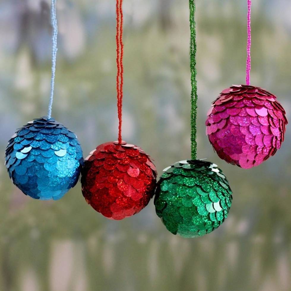 Hand Crafted Holiday Ornaments in Bright Colors Set of 4 'Sparks of Christmas' Item ID: 2671793840