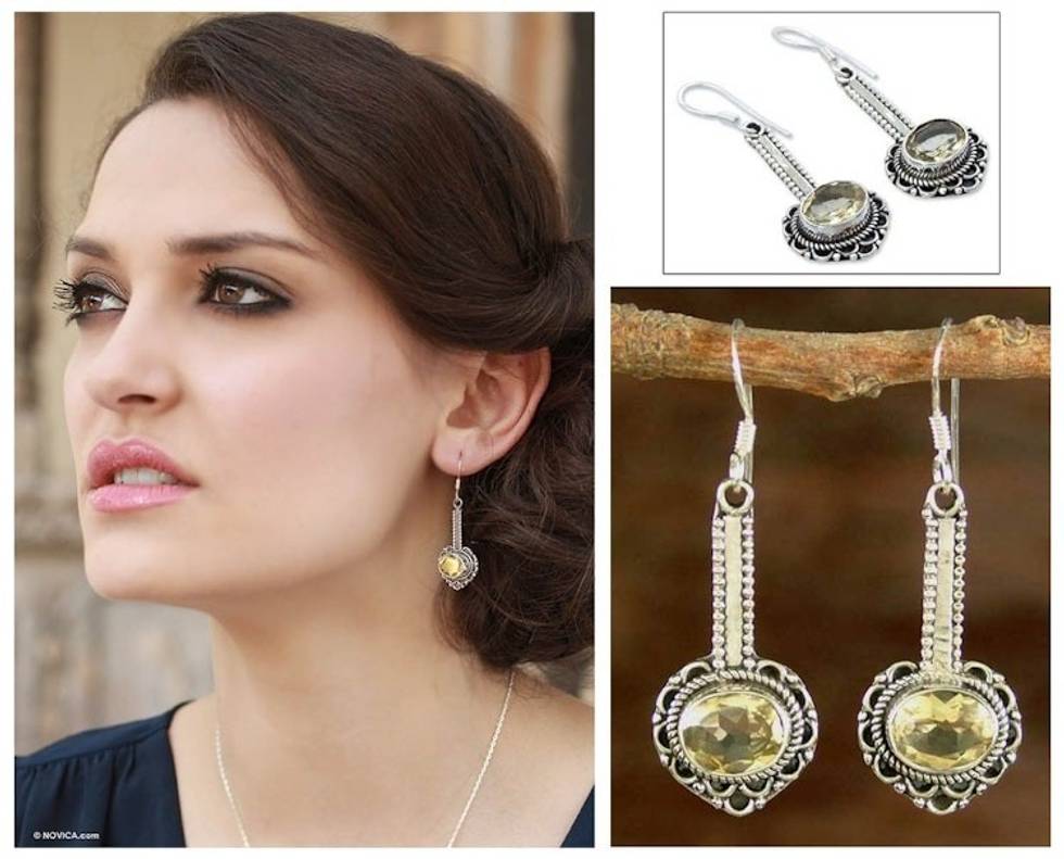 Hand Crafted Indian Sterling Silver and Citrine Earrings 'Heart of Gold' Item ID: 2671794604
