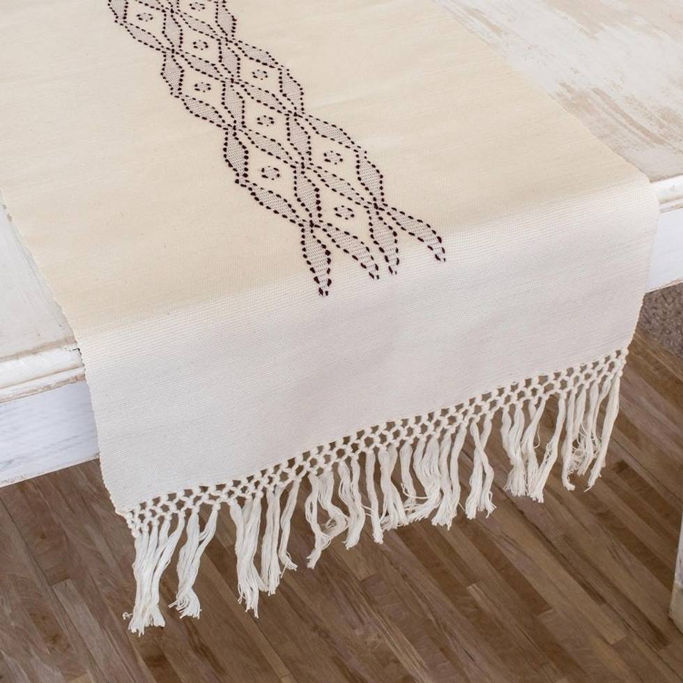 Hand Crafted Ivory Cotton Table Runner 'Coban Diamonds in Currant' Item ID: 2671626863