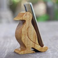 Hand Crafted Jempinis Wood Bird Phone Stand 'Dialing Bird' Item ID: 2671745171