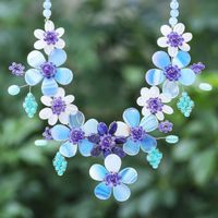 Hand Crafted Lapis Lazuli and Agate Statement Necklace 'Flower Bed in Blue' Item ID: 2669925910