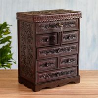 Hand Crafted Leather Jewelry Chest 'Colonial Flowers' Item ID: 2671400067