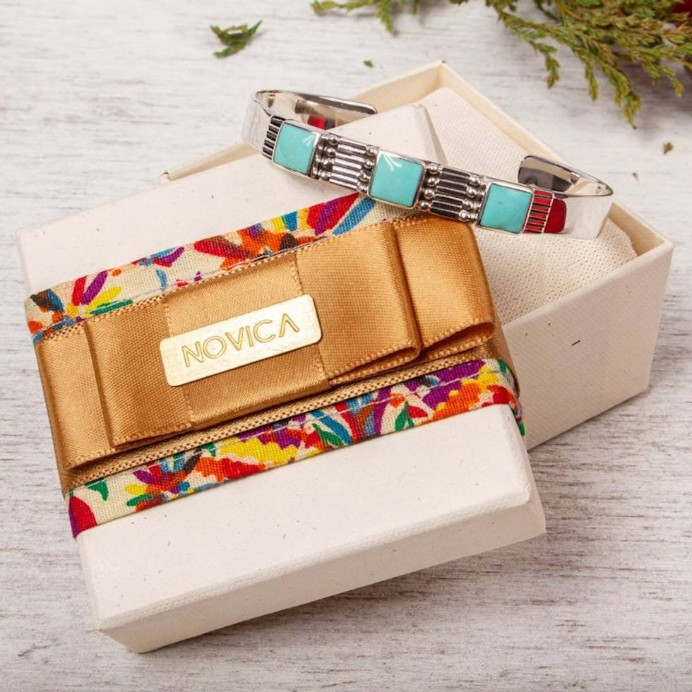 Turquoise is my birth stone. This necklace combine 2 colors of turquoise - light blue and darker blue stones alternate. The stones are brighter and silver is shinier in person than on picture, and it gives necklace a really amazing look. Got a lot of compliments when wearing it. Guillermo, special thanks for post-card - its always nice to get a feeling of a different culture where the masterpiece belongs..