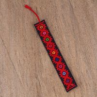 Hand Crafted Multi-Color Embroidered Cotton Bookmark 'Dynamic Diamonds' Item ID: 2669926939