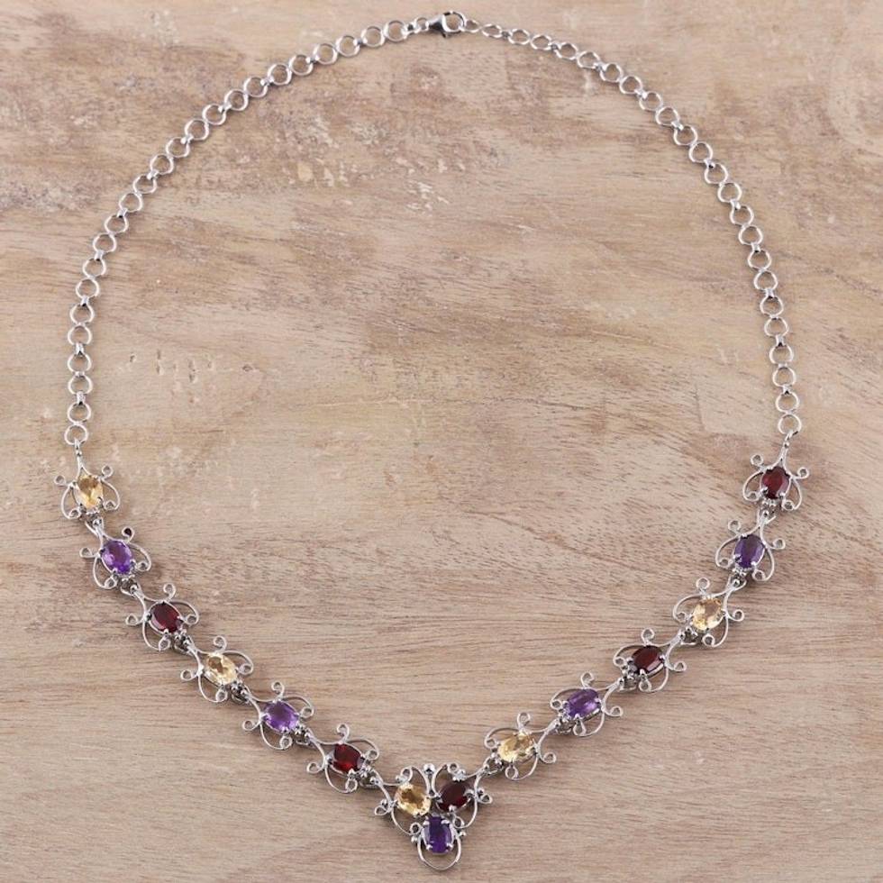 Hand Crafted Multi-Gemstone Link Necklace from India 'Trinity Grandeur' Item ID: 2671790886