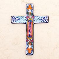 Hand Crafted Multicolored Ceramic Wall Cross From Mexico 'Orange Lily' Item ID: 2669932431