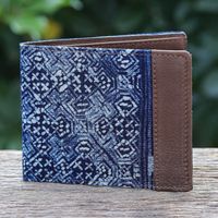 Hand Crafted Navy Cotton and Leather Batik Wallet 'Sandy Shores in Brown' Item ID: 2669930520