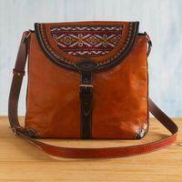 Hand Crafted Orange Leather Shoulder Bag with Wool Accent 'Solari' Item ID: 2669908323